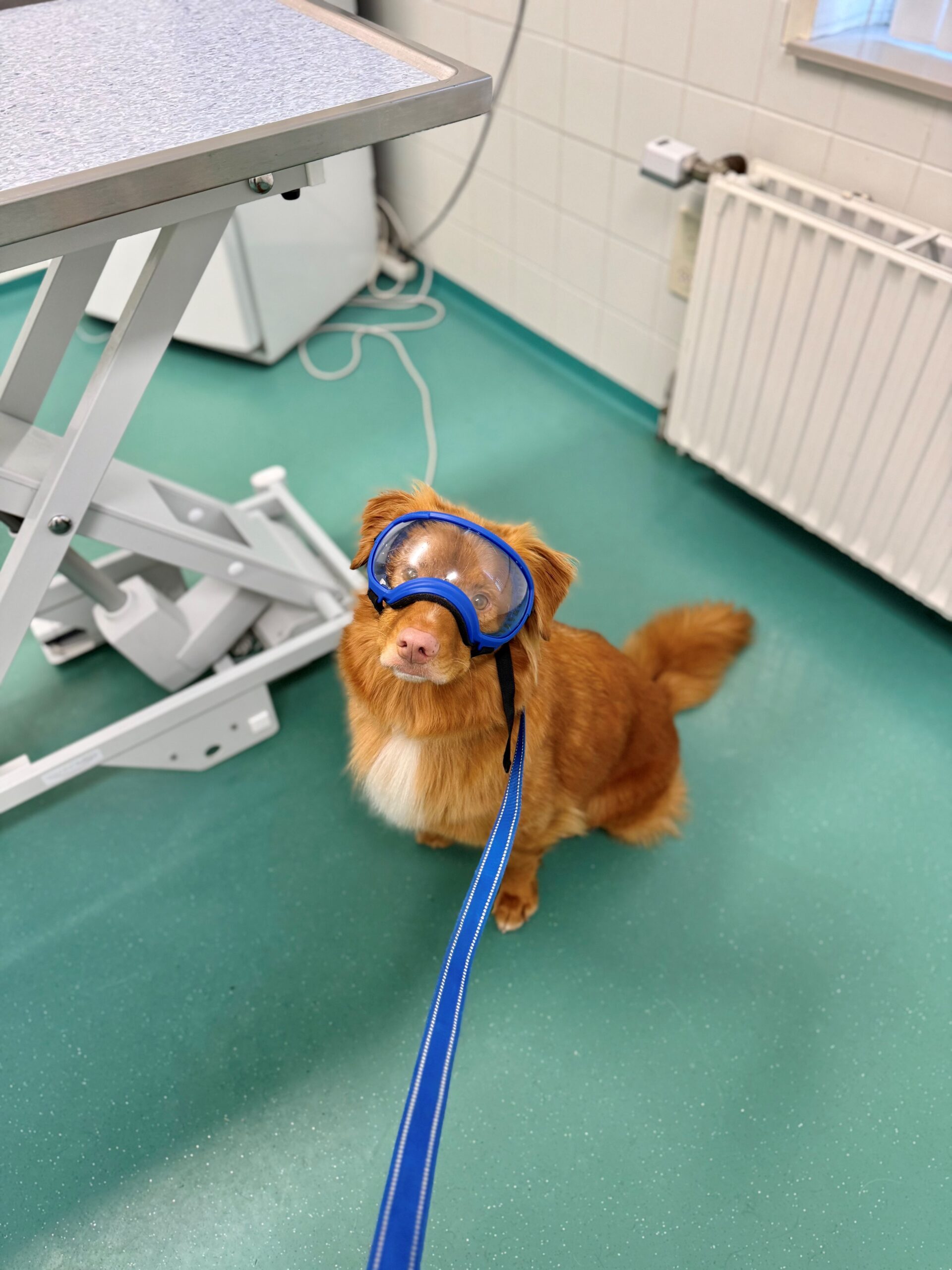 In November 2025 had Falco een ongeluk. Tijdens een wandeling ontplofte er een glazen fles, en Falco kreeg glas in zijn oog. Zijn hoornvlies was kapot gescheurd, en hij was zijn oog bijna kwijt. Zijn herstel heeft bijna 2 maanden geduurd, en die volledige tijd heeft hij constant toezicht en zorg nodig gehad. Gelukkig had hij wel bewegingsvrijheid, dankzij zijn Rex Specs bril. Met de bril kon hij gewoon wandelen en hoefde hij niet de hele dag met een kap rond te lopen. Zo kon hij overal bij zijn en konden we hem mentaal tevreden houden, zonder dat zijn herstel daaronder moest lijden. Wat zijn wij blij met die bril!